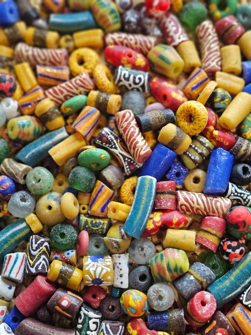 Craft with African glass beads from Ghana. Design jewelry, accessories, or crafts, with Dwennimmen Adinkra beads.